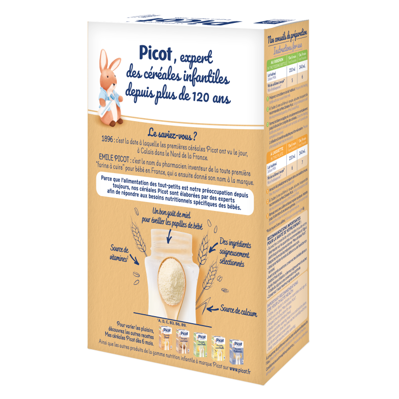 Nos céréales Picot saveur miel sont élaborées par des experts afin de répondre aux besoins nutritionnels spécifiques des bébés.