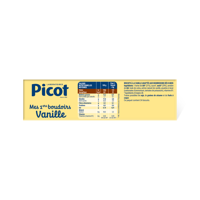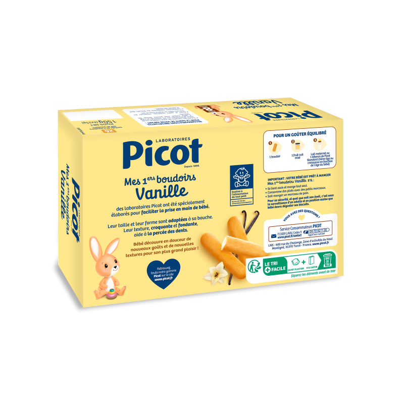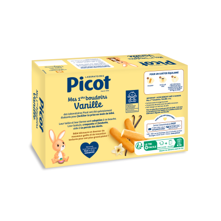 Avec Mes 1ers Boudoirs Vanille Picot, bébé découvre en douceur de nouveaux goûts et de nouvelles textures pour son plus grand plaisir.