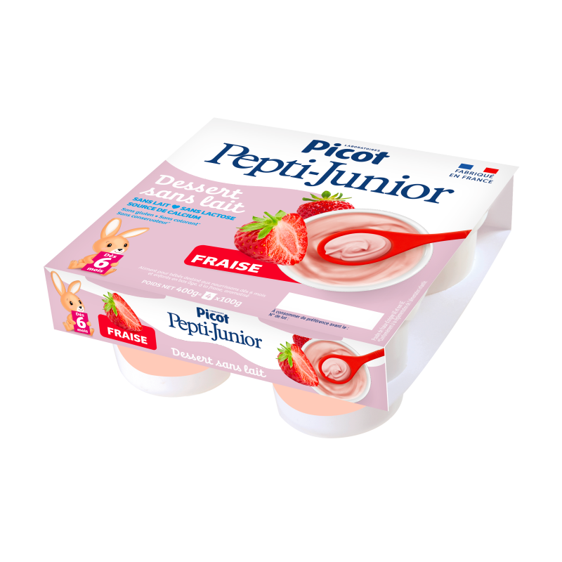 Idéals pour initier les bébés à la diversification alimentaire tout en leur faisant plaisir, les desserts sans lait Picot Pepti-Junior saveur fraise sont :Â