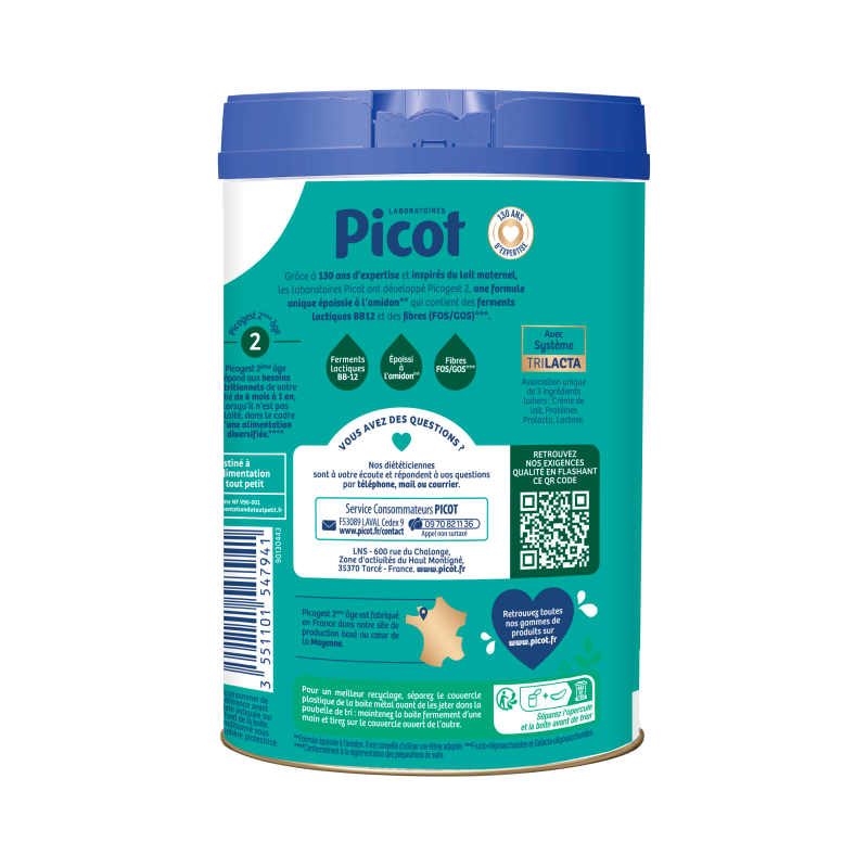 Grâce à 130 ans d'expertise et inspirés du lait maternel, les laboratoires Picot ont développé Picogest 2 :