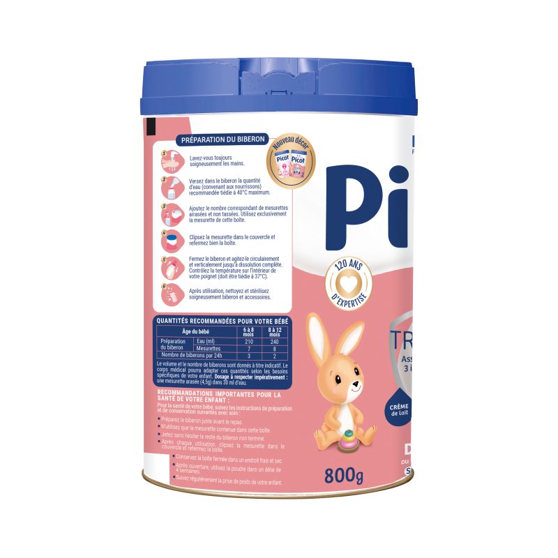 Grâce à 120 ans d'expertise et inspirés du lait maternel, les laboratoires Picot ont développé le système TriLacta, une combinaison unique de 3 ingrédients laitiers : Crème de lait, Protéines ProLacta, Lactose uniquement.