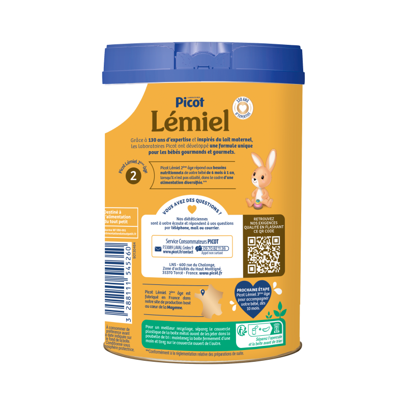 Découvrez Picot Lémiel 2, une formule de lait bébé épaissi pour les bébés gourmets et gourmands de 6 à 12 mois.