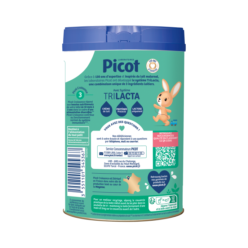 Grâce à 130 ans d'expertise et inspirés du lait maternel, les laboratoires Picot ont développé le système TriLacta, une combinaison unique de 3 ingrédients laitiers : crème de lait, protéines ProLacta, Lactose uniquement.